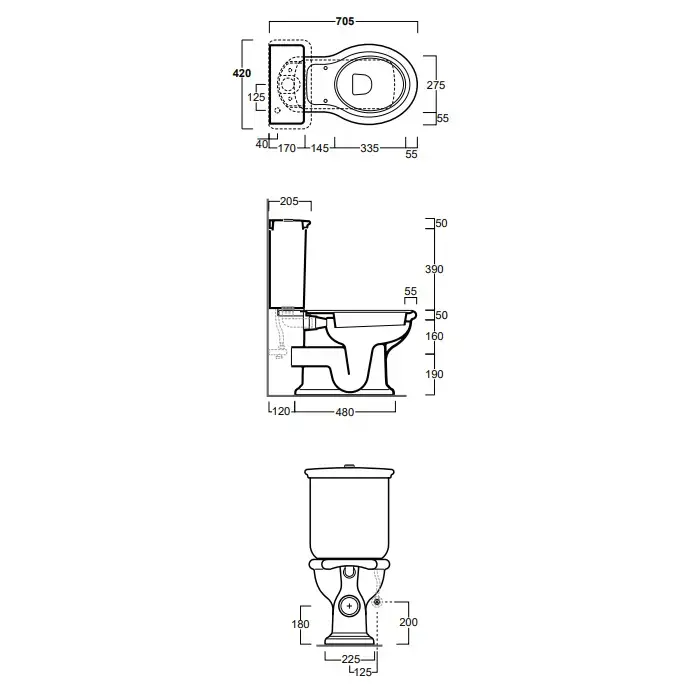 SIMAS Lante Унитаз моноблок 70.5х38.5см, с вертикальным сливом с бачком с боковой ручкой смыва, фурнитура бронза, цвет белый