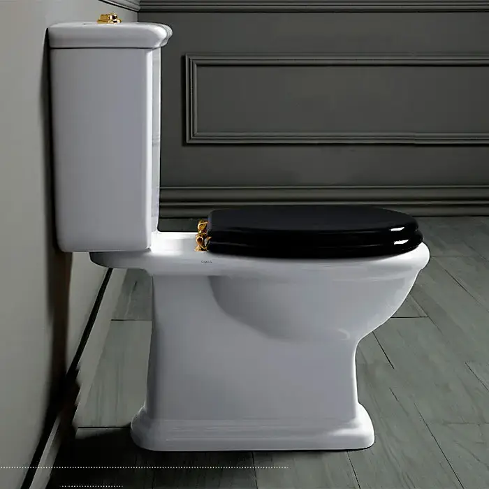 SIMAS Lante Унитаз напольный, выпуск в пол, 38,5х58см, с высоким бачком, с фурнитурой, без кронштейнов, цвет: белый/золото