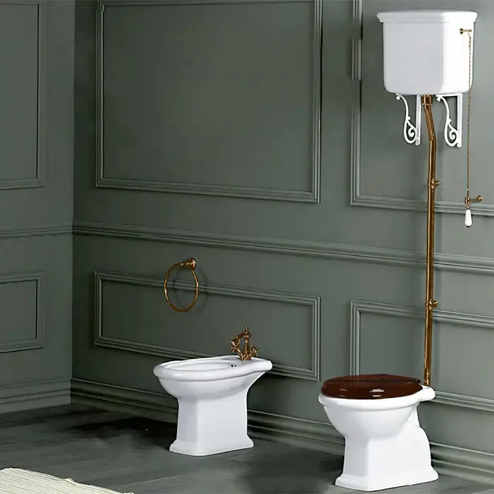 SIMAS Lante Унитаз напольный 38,5х58см, выпуск в пол, с высоким бачком, без кронштейнов, с фурнитурой цвета бронза