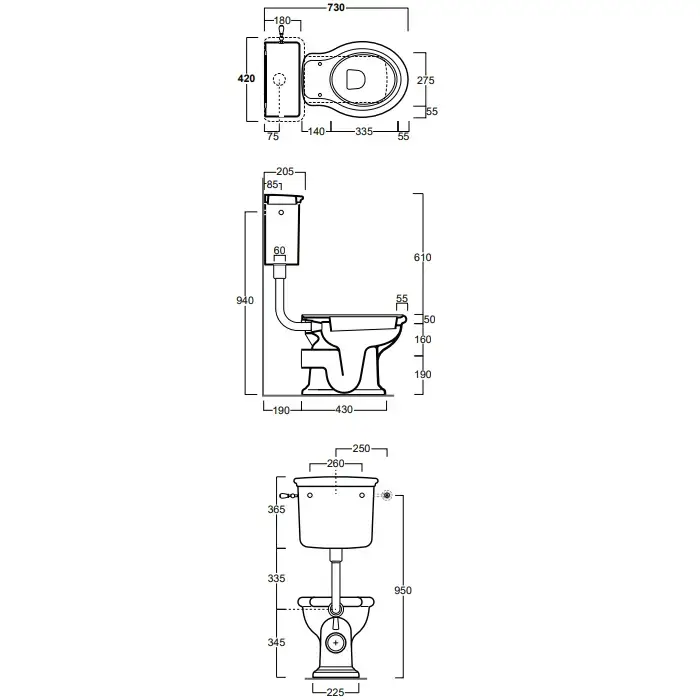 Kerasan Retro Унитаз 72х38.5см., с высоким бачком, слив в стену, цвет: белый/золото