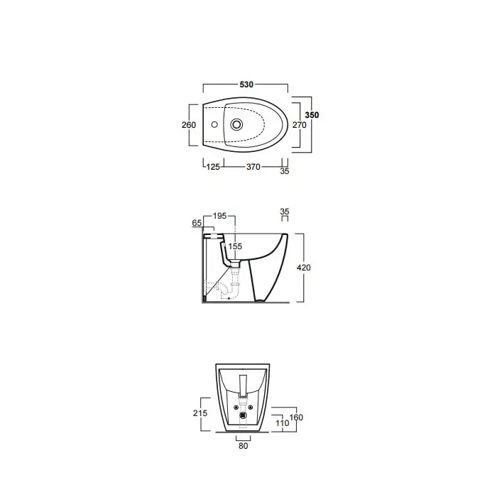 Simas Lft Spazio биде приставное 53х34см, с 1 отв. под смеситель, цвет белый