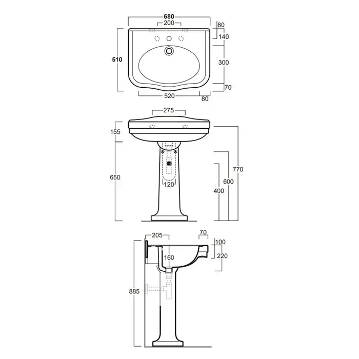 SIMAS Londra Раковина 68x52см с 1 отв. (и двумя намечеными под смеситель), цвет белый