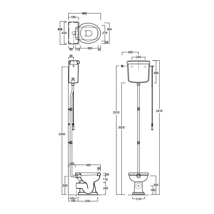 SIMAS Londra Унитаз 60х36.5см, c горизонтальным сливом, с высоким бачком, механизмом и трубой цвет хром