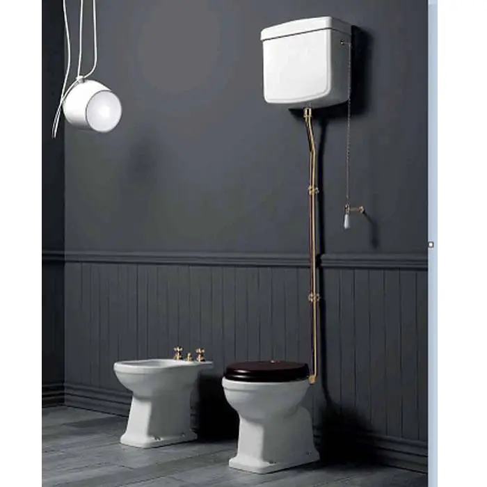 SIMAS Londra Унитаз 60х36.5см, c горизонтальным сливом, с высоким бачком, механизмом и трубой цвет золото