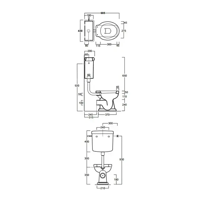 SIMAS Londra Унитаз 60х36.5см, c горизонтальным сливом со средним бачком, механизмом и трубой цвет бронза