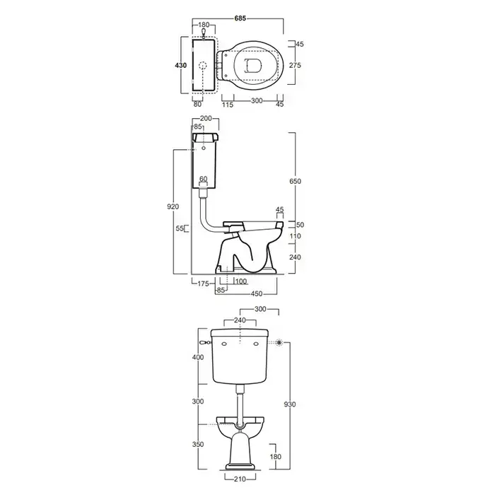 SIMAS Londra Унитаз 60х36.5см, c вертикальным сливом со средним бачком, механизмом и трубой цвет золото