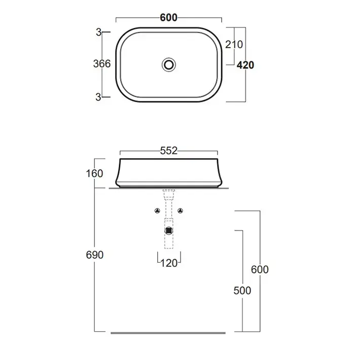 SIMAS Sharp раковина накладная, 60х42см, без отв. под смеситель