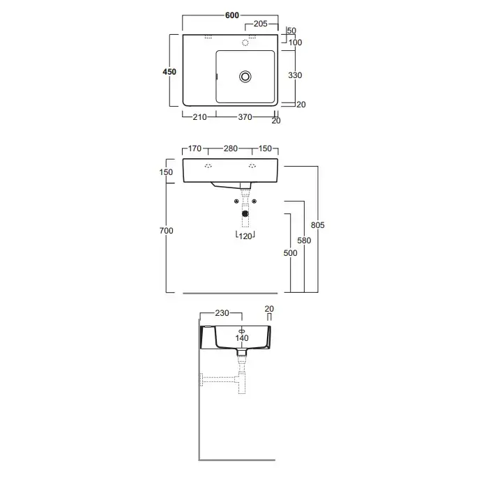 SIMAS Top e lavabi d'arredo раковина накладная/подвесная 60х45 с 1 отв. под смеситель левая ,цвет белый