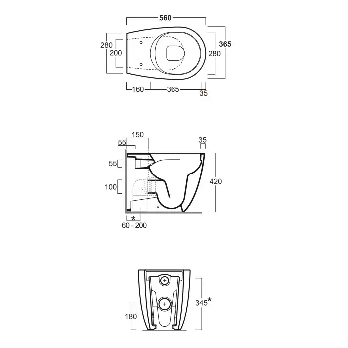 SIMAS VIGNONI Унитаз приставной 560х365 мм., Rimless, с универсальным сливом, цвет antracite matt