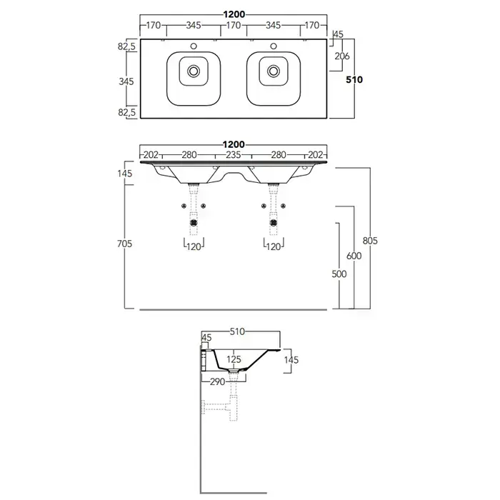 Simas WAVE Раковина двойная 120x50xh14,5см, встраиваемая, с 2 отв, цвет: белый