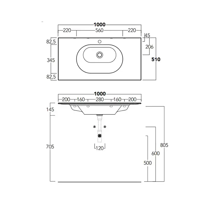 SIMAS WAVE Раковина на столешницу 100x50xh14,5 см, с 1 отв под смеситель,цвет белый