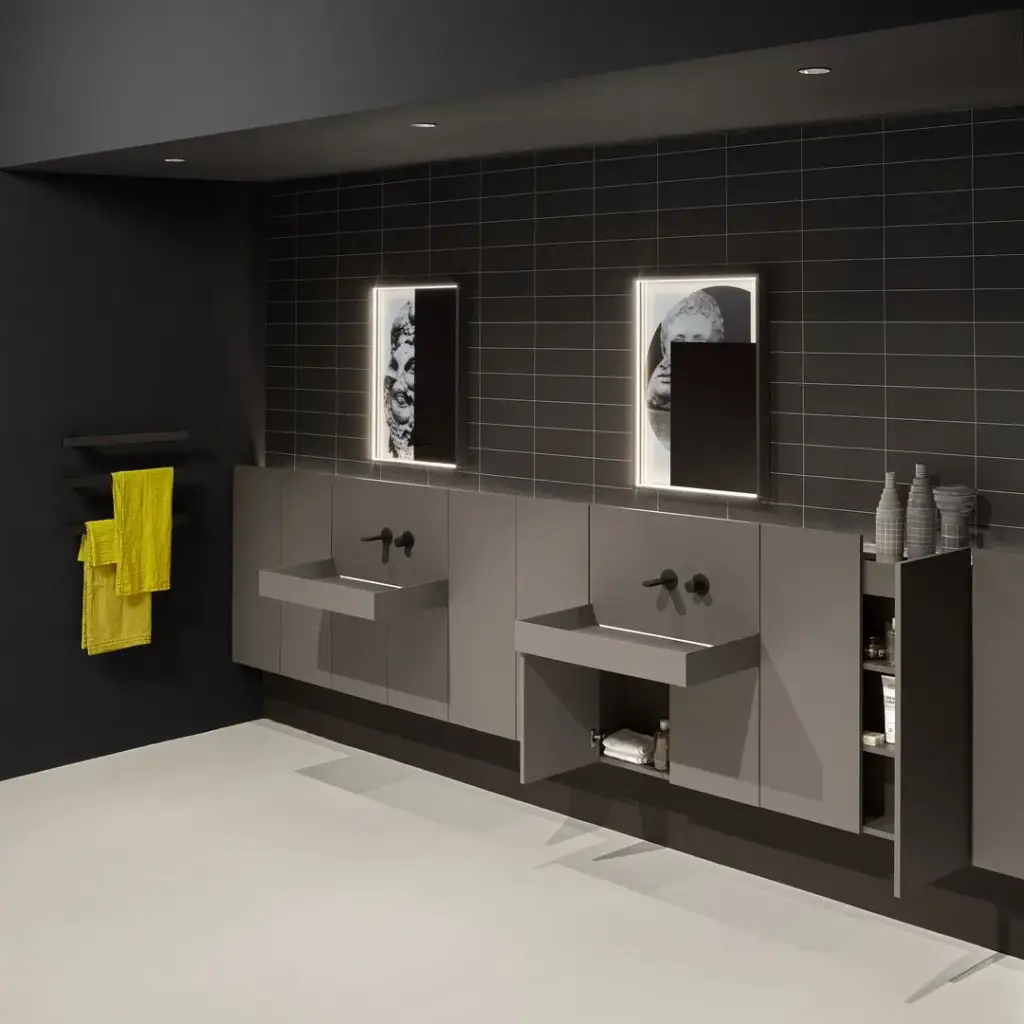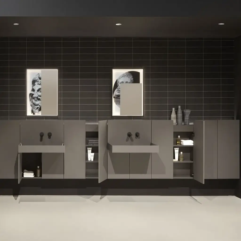Шкаф в ванную комнату Antonio Lupi ANIMA LIQUIDA ALBO5372W*3+ALBO5136W.DX GRIGIO SMOG LUCIDO-715