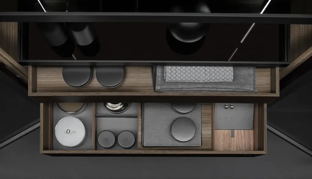 Шкаф в ванную комнату Falper BUTLER FTF+FT2 Burned walnut-N6/Alluminio nero opaco/smoke grey glass