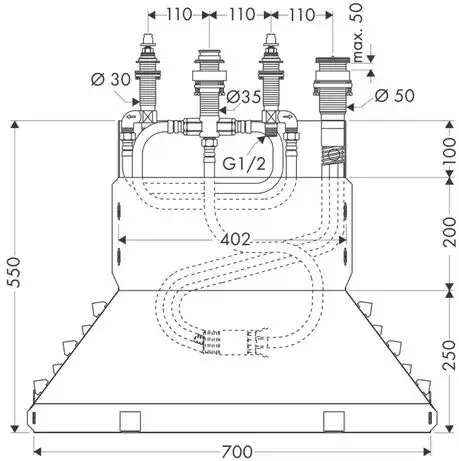 Скрытая часть смесителя на 4 отв. на край ванны 70*h55
