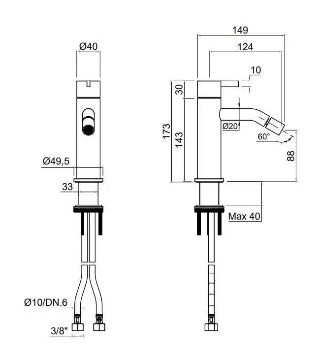 Смеситель для биде Antonio Lupi ESSENTIA ES400SA