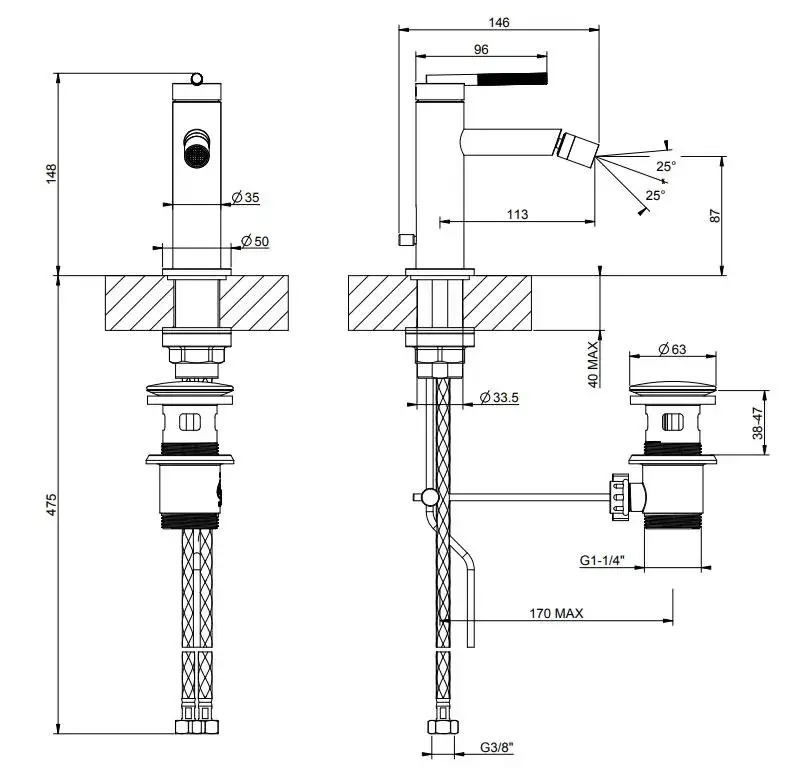 Gessi Ingranaggio Смеситель для биде, на 1 отв., однорычажный , цвет: Black Metal Brushed PVD