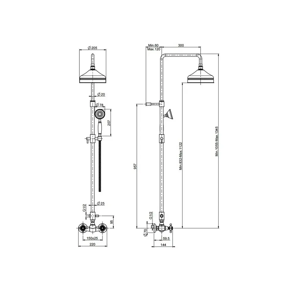 Ш:22xГ:30xВ:134.5xØ20.5