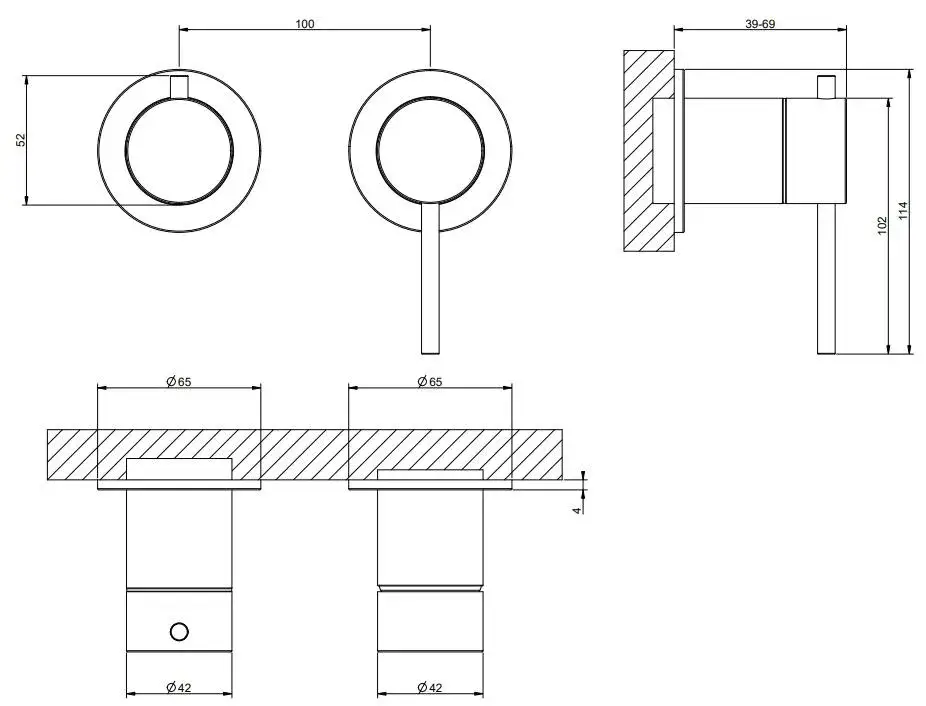 Gessi Shower316 Встраиваемый настенный смеситель для ванны, автоматический переключатель ванна-душ, держатель неподвижный, внешняя часть, цвет: шлифованная сталь