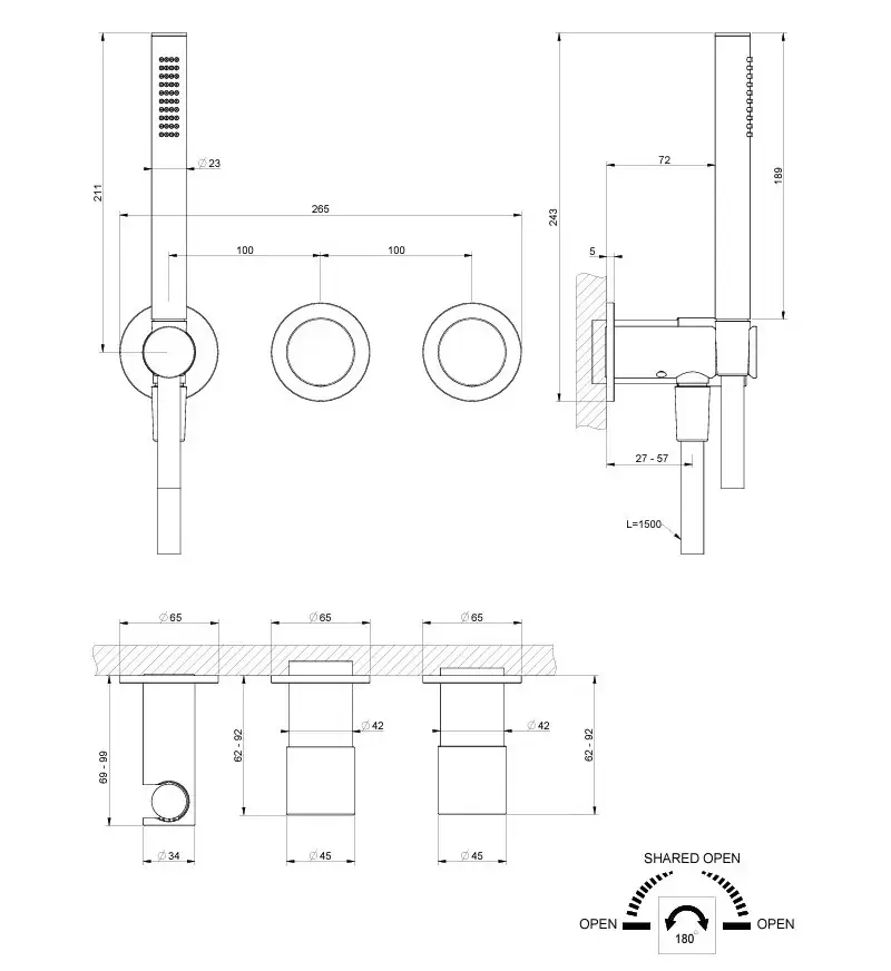 Gessi Habito Diamantao Смеситель настенный встраиваемый, однорычажный, с переключателем на 2 положения, с ручным душем, настенным держателем,цвет: хром