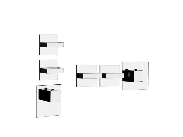 Gessi Rettangolo Смеситель для душа, встраиваемый, термостатический, подключение на 3/4", с 4мя независимыми выходами, внешняя часть, цвет: Black XL