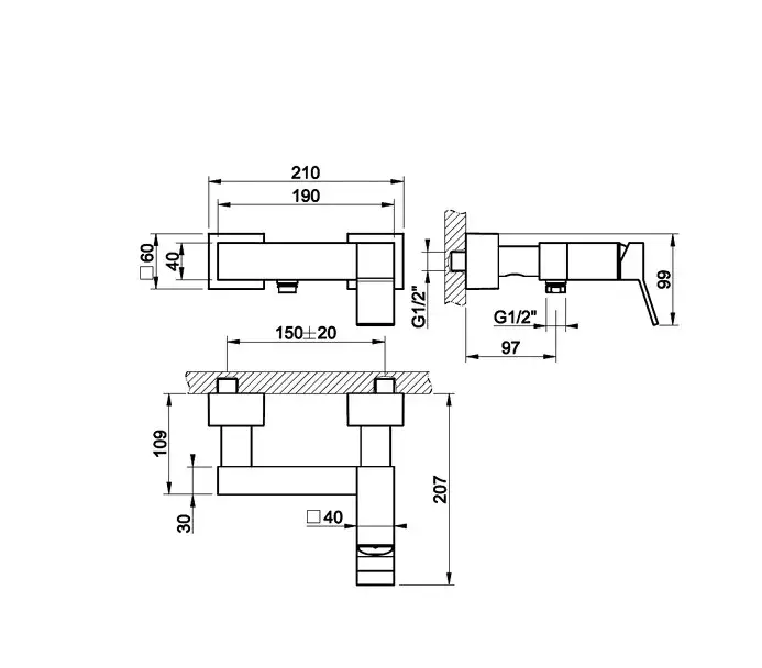 Gessi Rettangolo K Встраиваемый однорычажный смеситель без излива, внешняя часть, цвет: хром