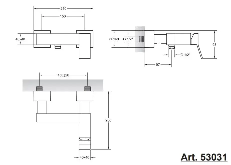 Gessi Rettangolo K Встраиваемый смеситель, с подводом воды, держателем лейки и переключателем PULL, внешняя часть, цвет: хром