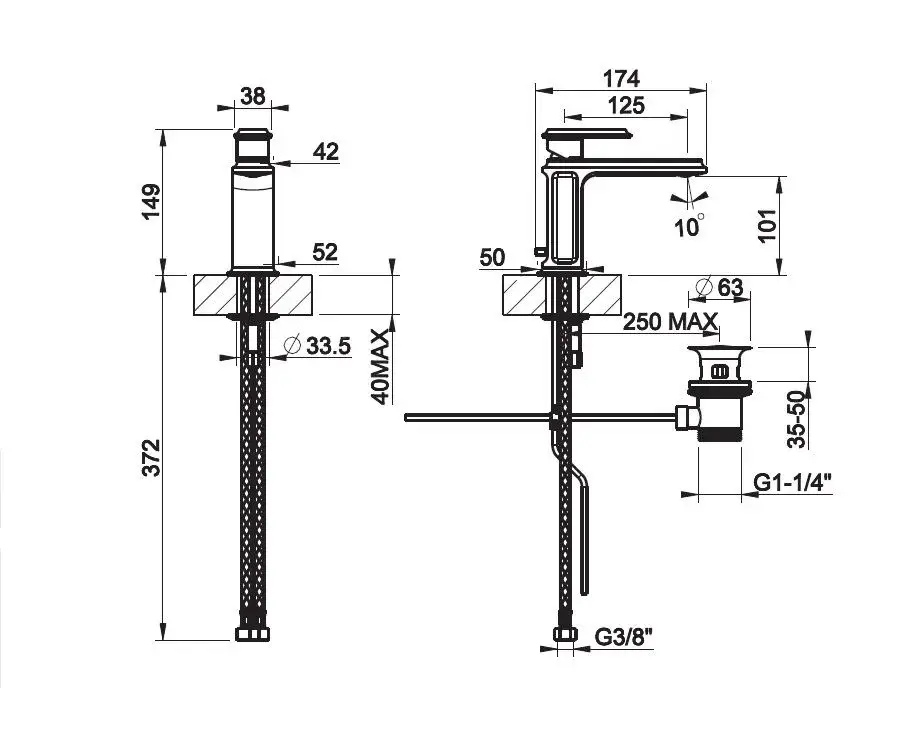 Gessi Eleganza Смеситель для раковины на 1 отверстие, без донного клапана, цвет: хром