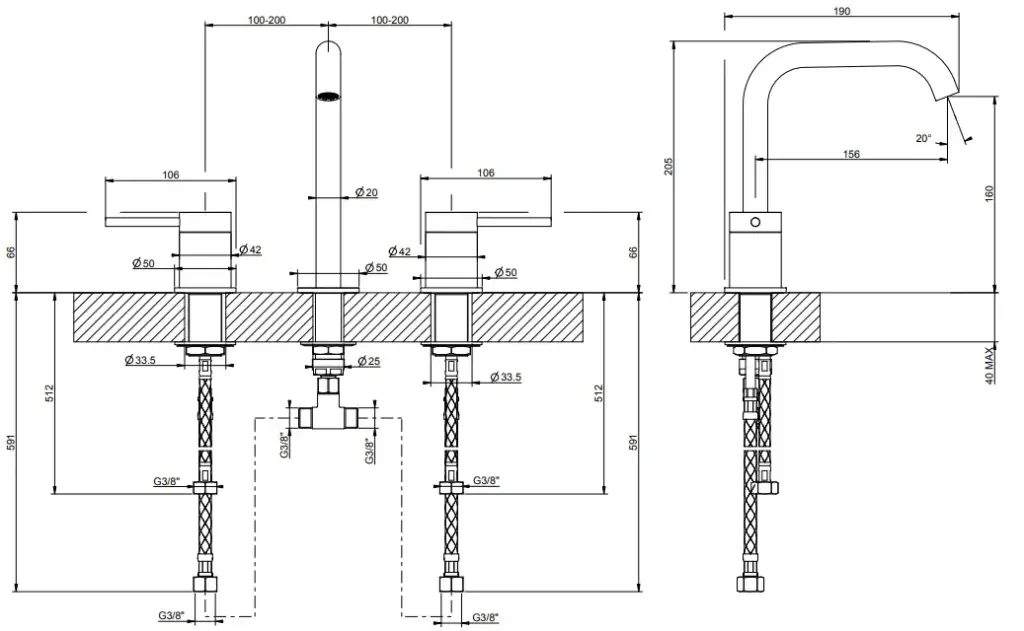 Gessi Flessa Смеситель для раковины с изливом 200 мм, без донного клапана, внешняя часть, цвет: Black XL
