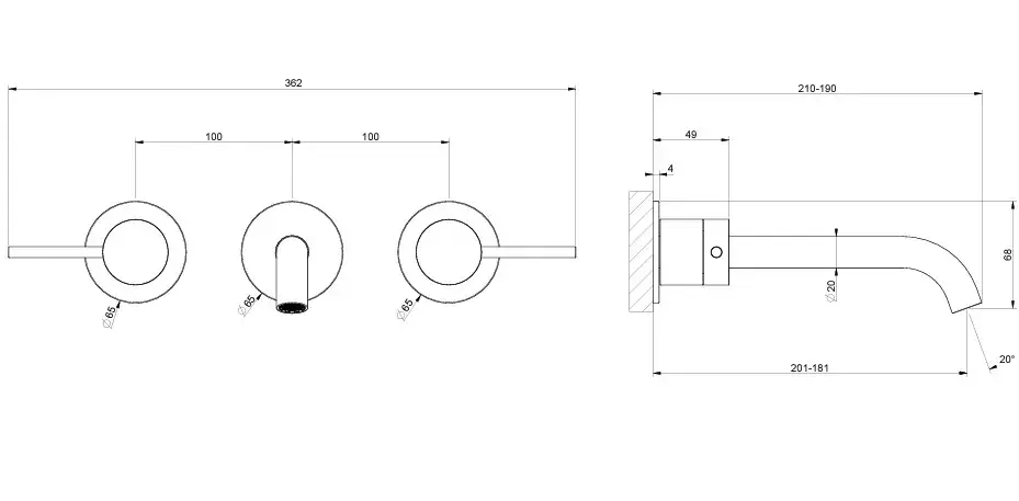 Gessi 316 Встраиваемый смеситель с изливом 200-180мм, внешняя часть, цвет: brushed black metal pvd