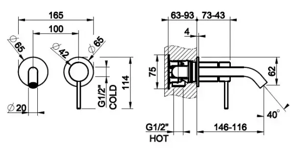 Gessi 316 Встраиваемый смеситель с изливом 200-180мм, внешняя часть, цвет: brushed black metal pvd
