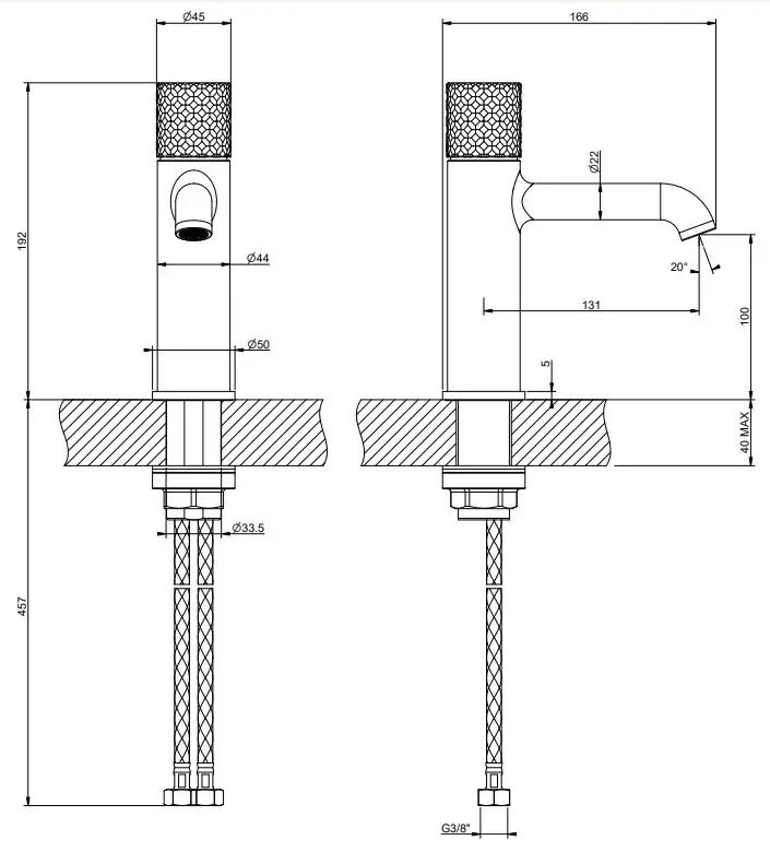 Смеситель для раковины Gessi HABITO INTRECCIO 70102#710 цвет-латунь PVD