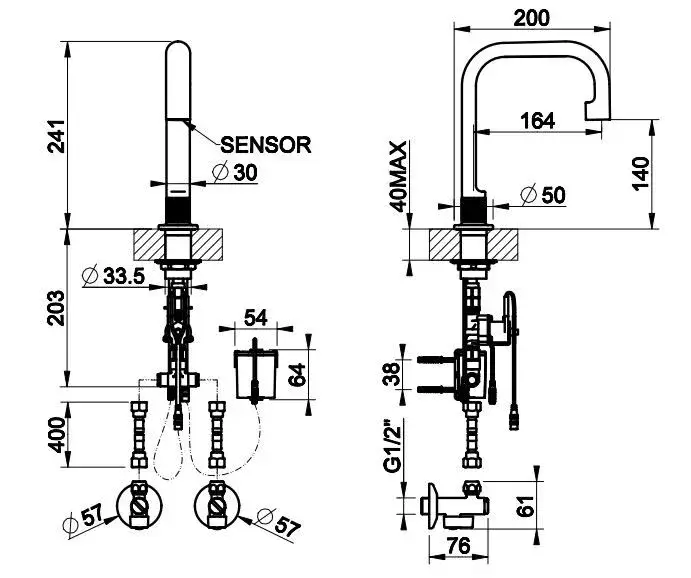 Gessi Inciso- Встраиваемый однорычажный смеситель с изливом, без донного клапана. внешняя часть, цвет: black XL