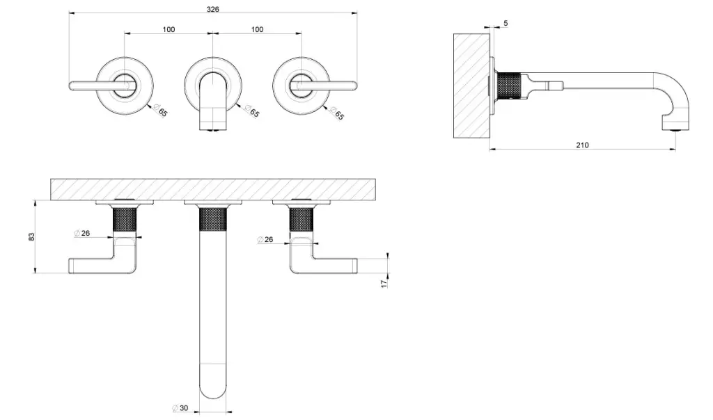 Gessi Inciso+ Встраиваемый смеситель для раковины на 3 отверстия с изливом, без донного клапана. внешняя часть, цвет: black XL