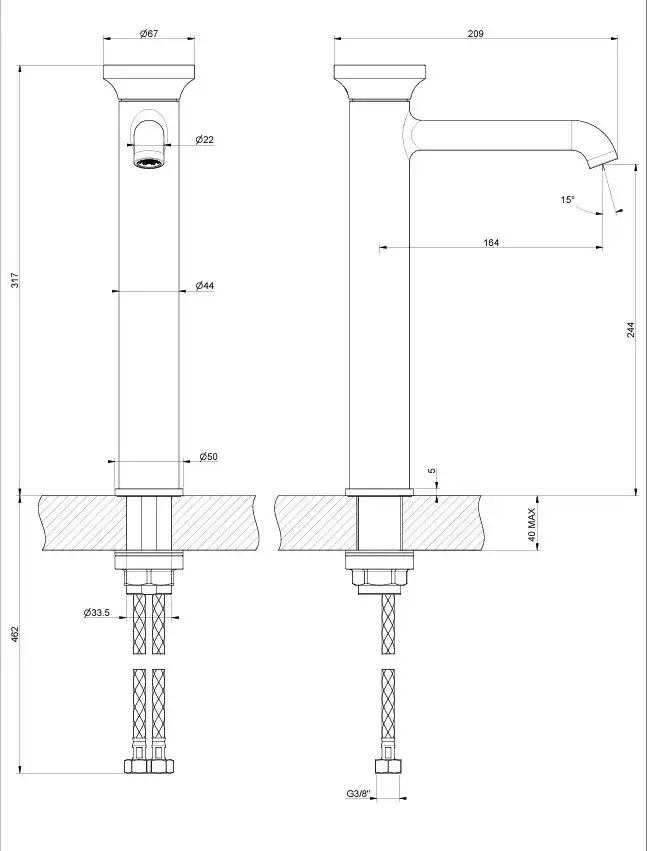 Gessi Origini Смеситель для раковины, на 1 отв. высокий, цвет: Black Metal Brushed PVD