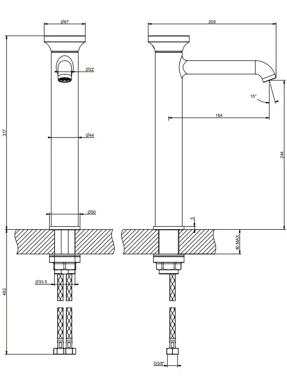 Gessi Origini Смеситель для раковины, на 1 отв. высокий, цвет: