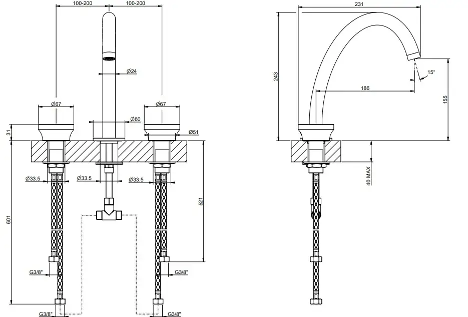 Gessi Origini Смеситель для раковины, встраиваемый с изливом: 17.1см., (внешняя часть) цвет: Finox Brushed Nickel