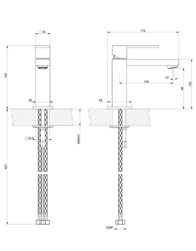 Gessi Rettangolo Смеситель для раковины, встраиваемый, однорычажный, с инд.длиной излива (70-300мм), внешние части, цвет: Black XL