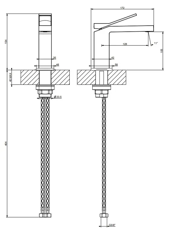 Gessi Rettangolo K Смеситель для раковины, встраиваемый, однорычажный, с индивидуальной длиной излива (70-300мм), внешние части, цвет: Black XL