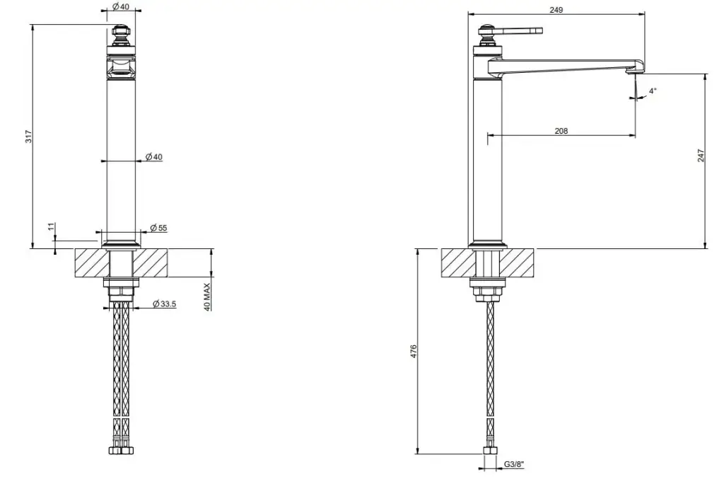 Gessi Venti20 Смеситель для раковины на 1 отверстие, однорычажный, высокий, в комплекте с донным клапаном, цвет: хром