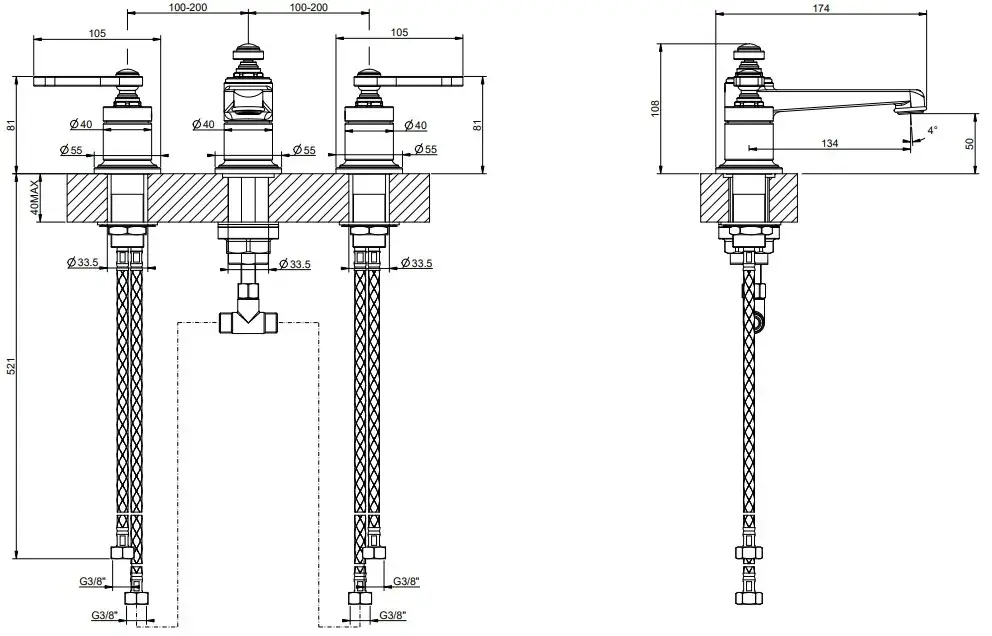 Gessi Venti20 Смеситель для раковины, на 3 отв., высота излива 98 мм., цвет: Warm Bronze PVD
