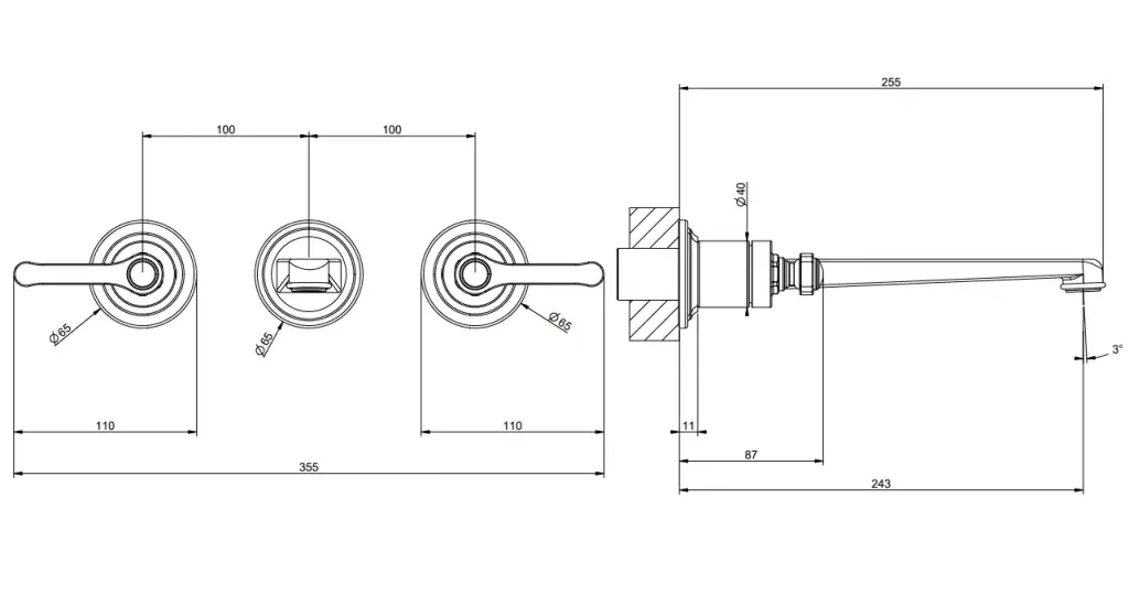 Gessi Venti20 Смеситель для раковины настенный, встраиваемый, однорычажный, излив 243 мм., внешняя часть, цвет: хром