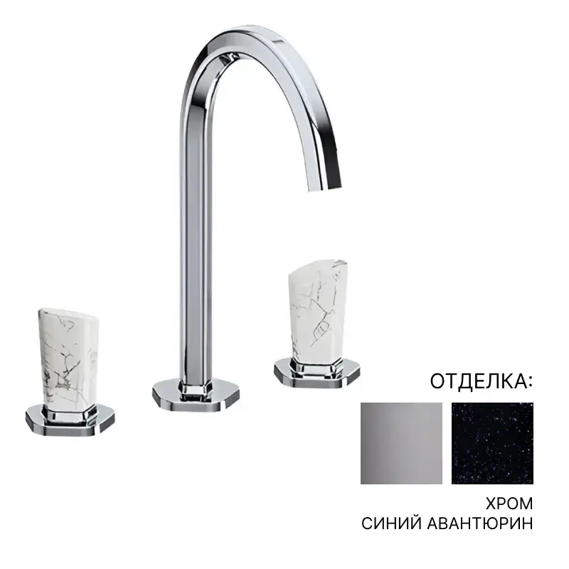 Смеситель для раковины Jorger SHADÓ 635.30.300.000-56 цвет-хром, ручки-cиний авантюрин
