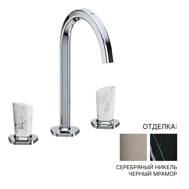 Смеситель для раковины Jorger SHADÓ 635.30.300.035-52 цвет-серебряный никель, ручки-черный мрамор