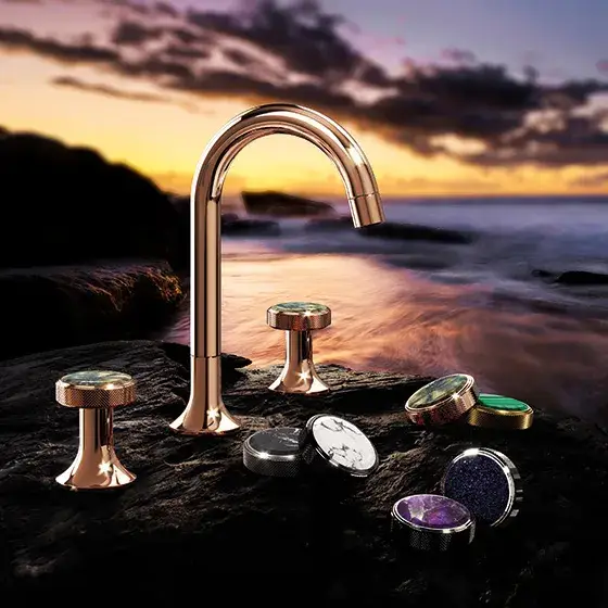Смеситель для раковины Jorger Valencia 638.30.300.022-55 розовое золото/лабрадорит
