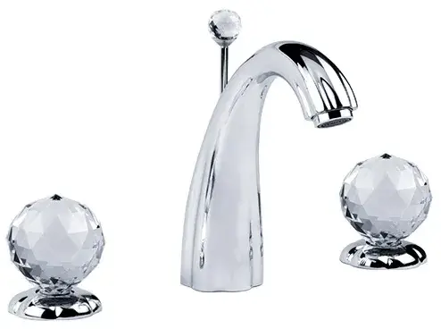 Смеситель для раковины на 3 отв., и сливной гарнитур излив 13, h16.5 цвет хром/ручки прозрачный хрусталь