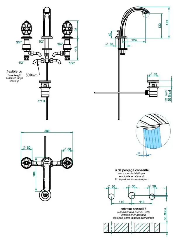 Смеситель для раковины THG Amboise Lapis Lazuli A1K-151
