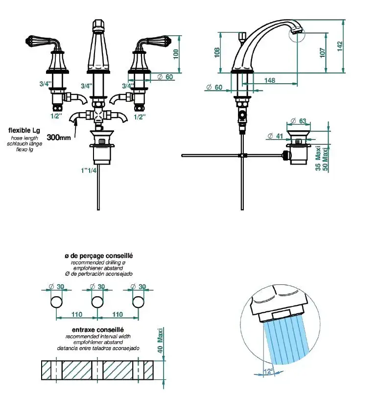Смеситель для раковины THG Art Deco A54.A02.151 хром
