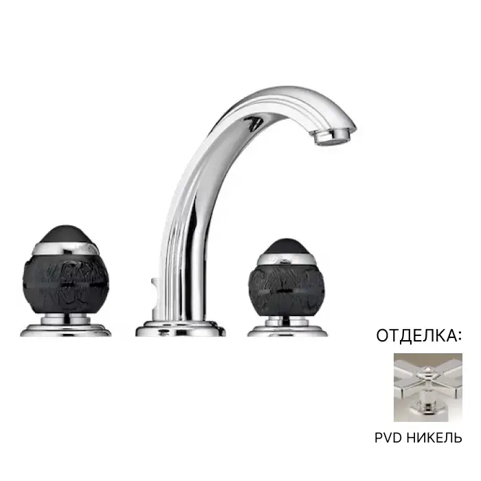 Смеситель для раковины THG BLACK CRYSTAL PANTHERE A2K.H55.151 никель PVD, ручки с черным хрусталем