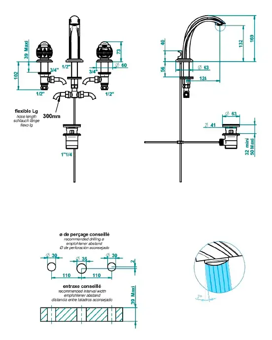 Смеситель для раковины THG BLACK CRYSTAL PANTHERE A2K.H55.151M никель PVD