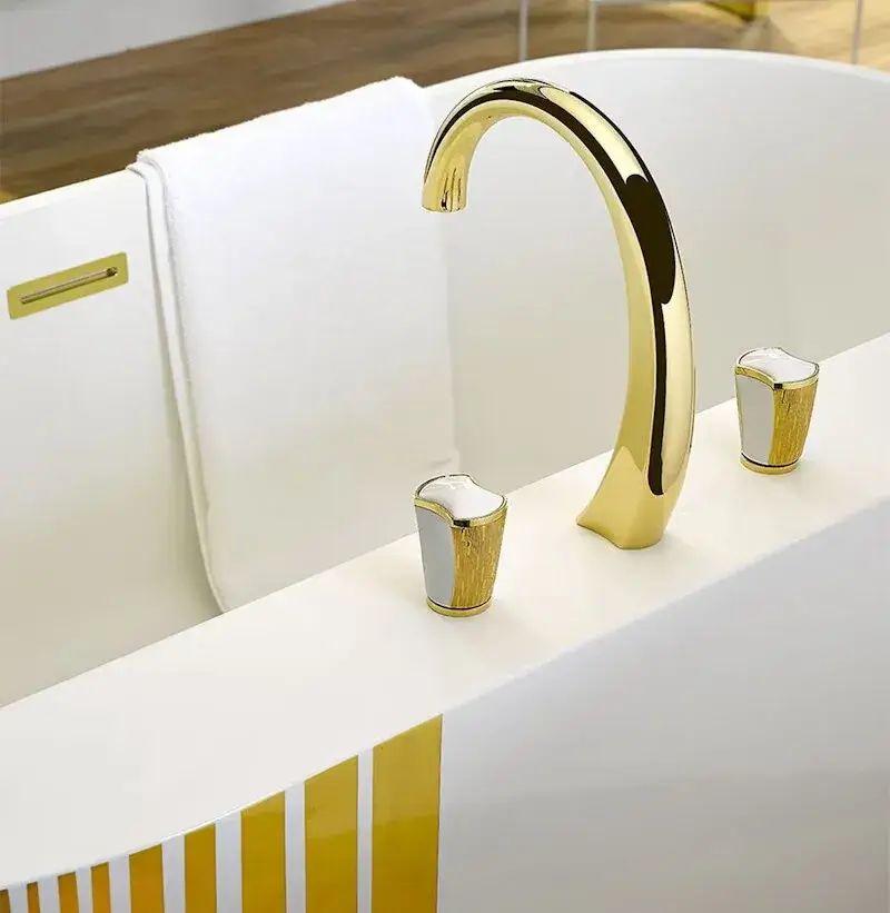 Смеситель для раковины THG Infini White Porcelain with Gold decor U2F-151